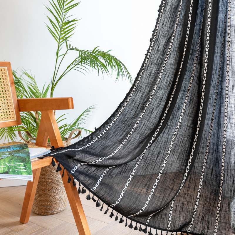 Ce rideau à rayure noir possède un style moderne et naturel, il sera du plus bel effet dans votre intérieur.
